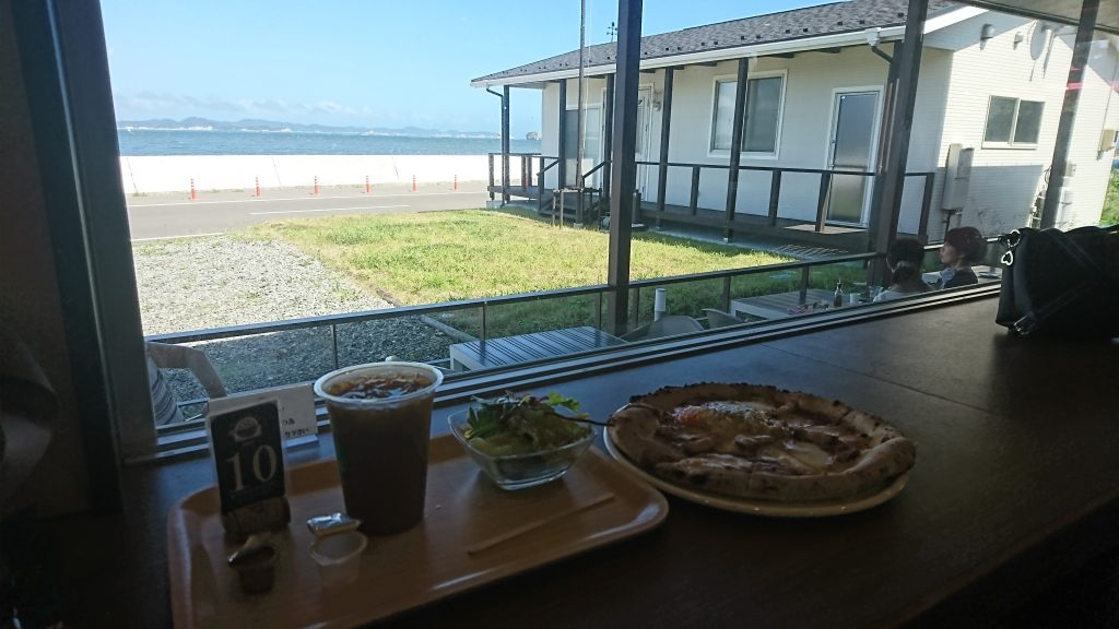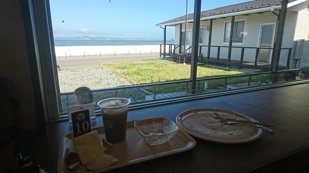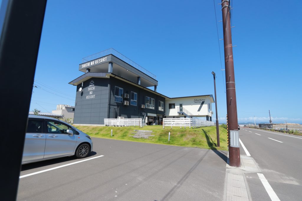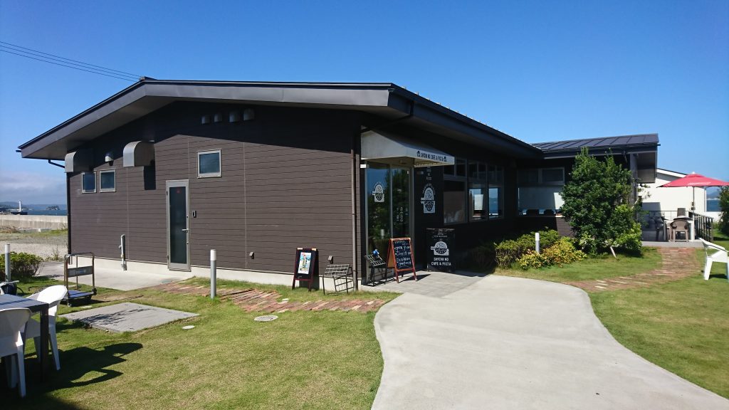 防潮堤の外側(海側)にあるシチノリゾートの一画、平屋の建物がカフェでした。