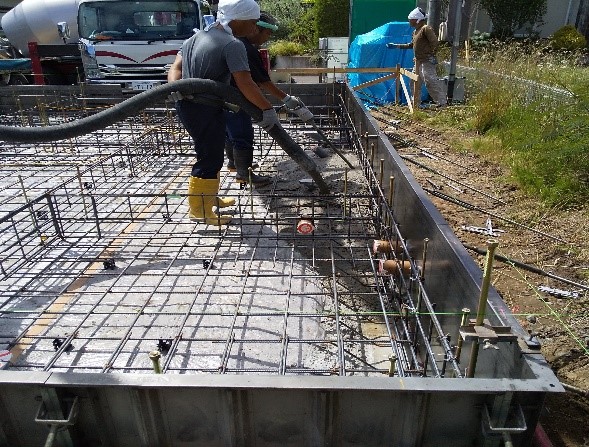 雨だと打設ができないので天気は要注意です。