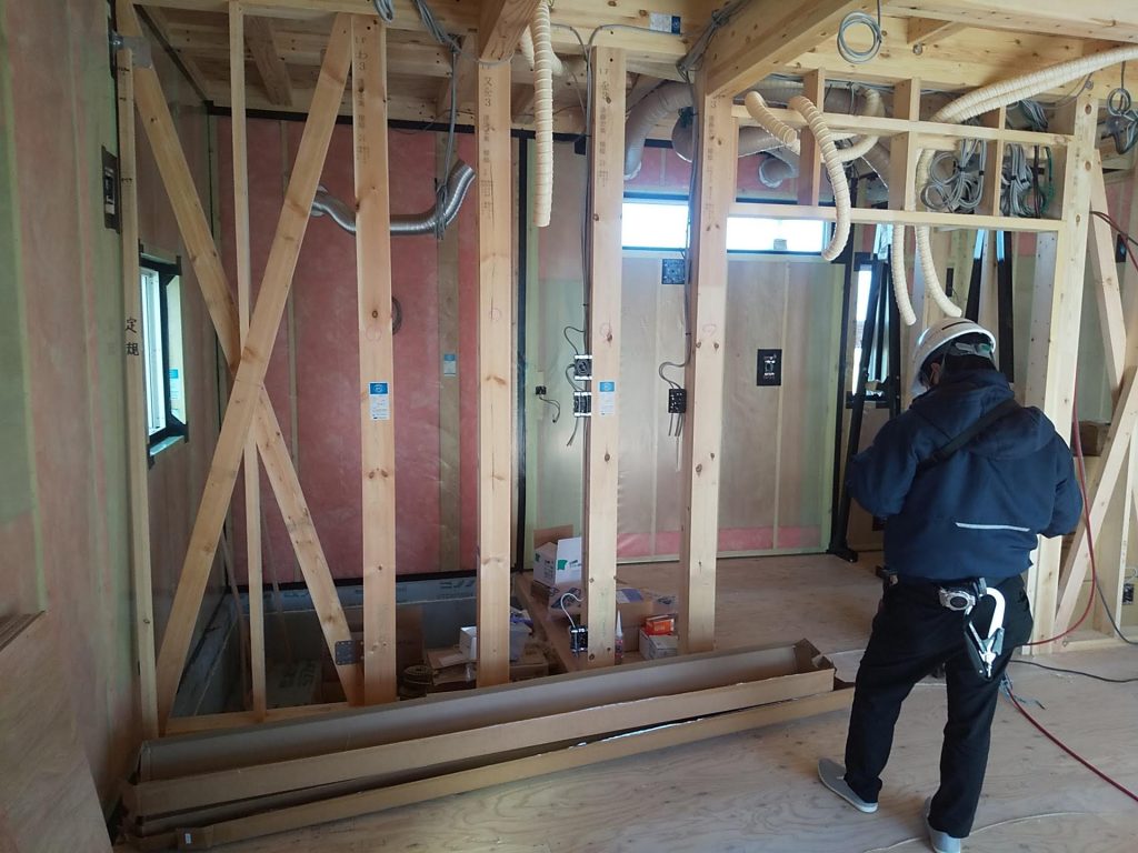 気密施工後、防水・断熱・気密部の検査を行ってから、壁ボードの施工に入っていきます。