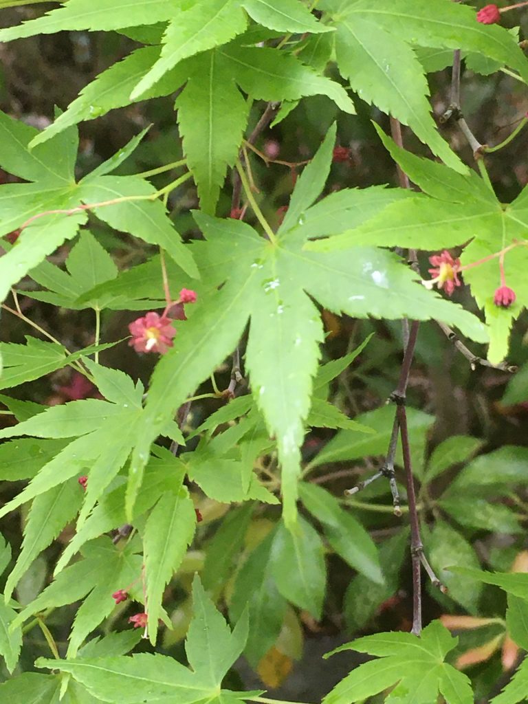 ところで、入口のもみじの木に花が咲いていました。