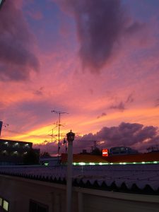 そんな中、少しの晴れ間がのぞいた日、ふと外を見るときれいな夕焼け空がありました。