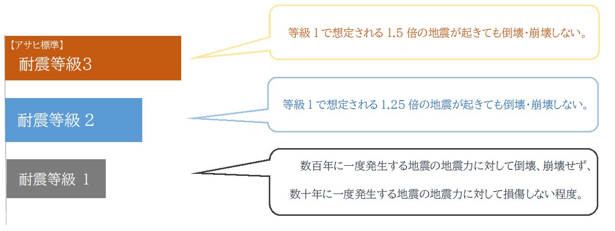 アサヒアレックスではこの「耐震等級3」が標準で獲得できます☺