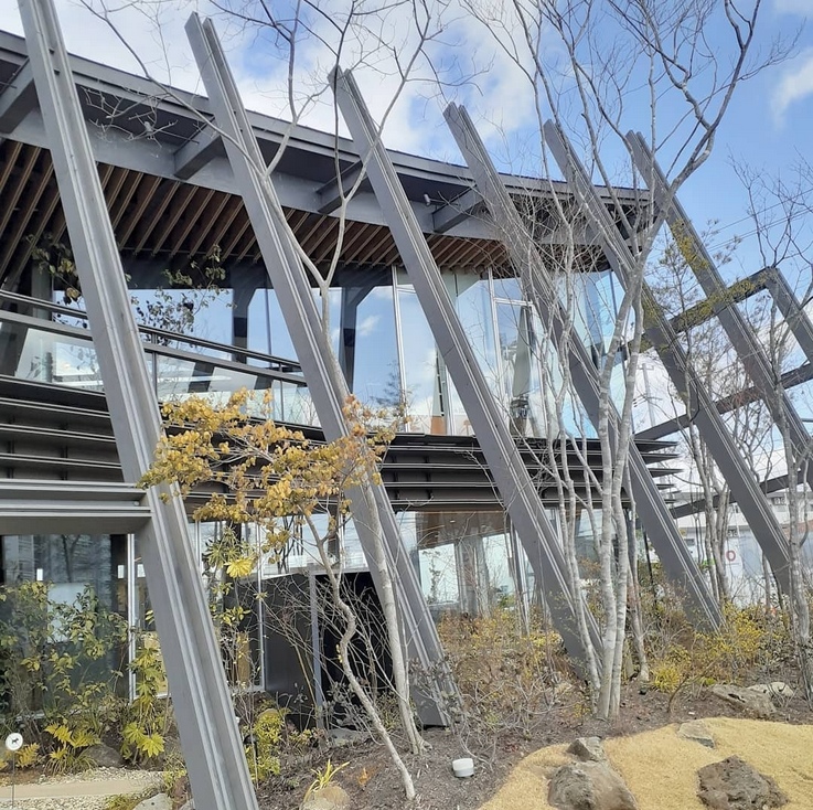 屋敷林“居久根”(イグネ)をイメージしているそうです。