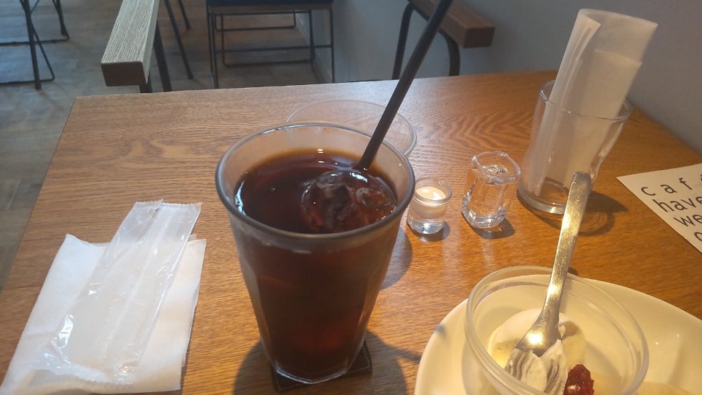 アイスコーヒーの氷が丸い。
