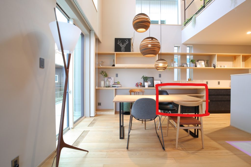 造作カウンターの下に