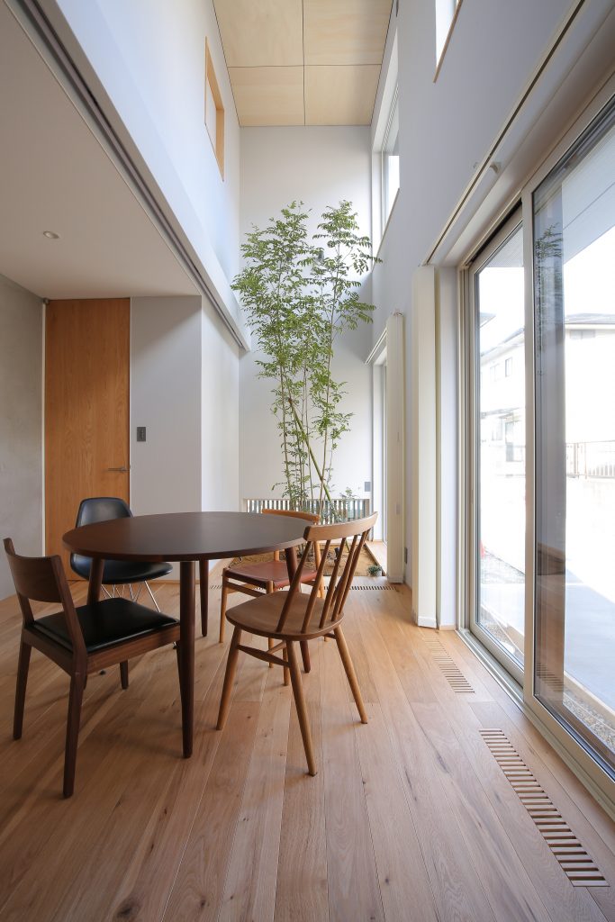 日中では中庭の植栽に