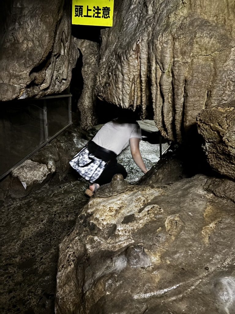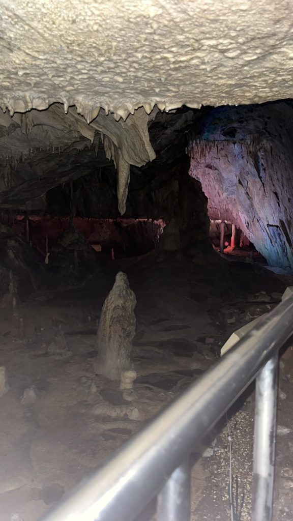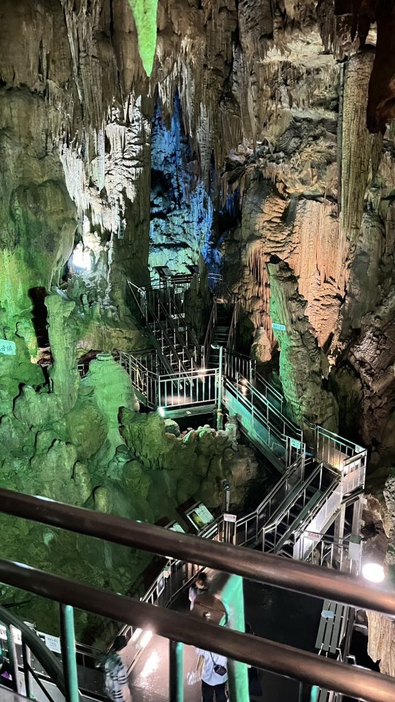 ライトアップされた大きな鍾乳洞があり