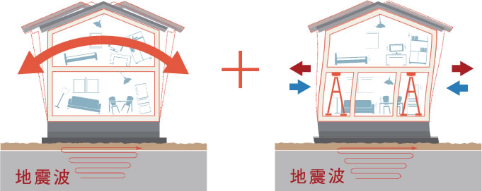 「耐震性能」は建物の強度を上げる地震対策ですが、建物が地震エネルギーを全て受け止めて耐えようとするため、構造躯体へのダメージが大きくなります。蓄積したダメージの影響で余震や別の地震の際に、本来の性能を発揮できない可能性があります。
