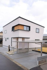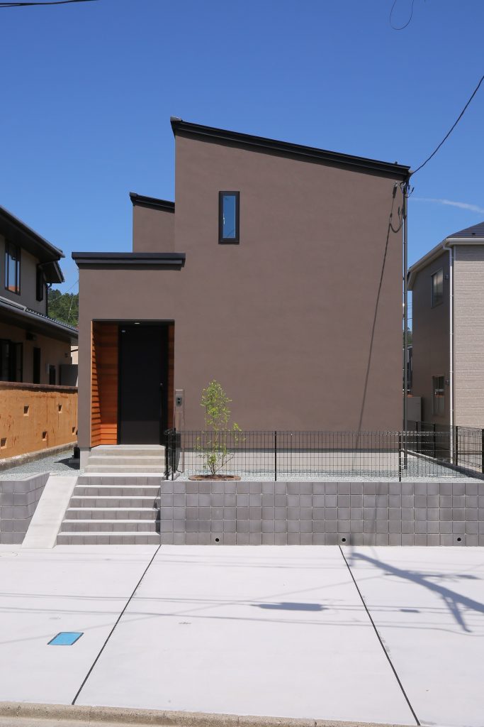 塗り壁の質感を楽しむ外観。