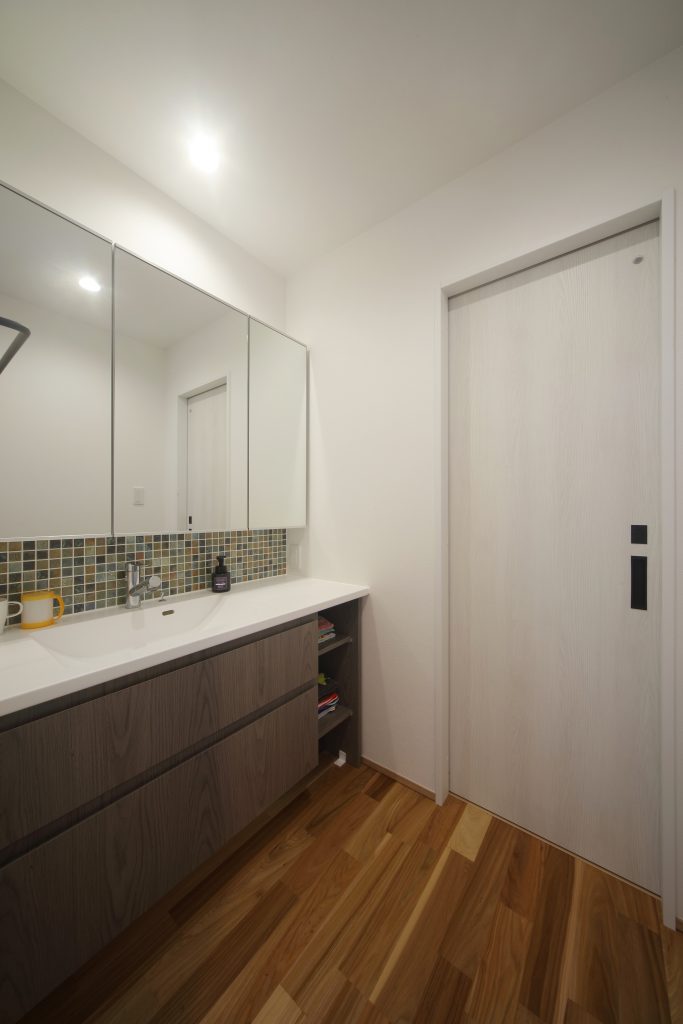 アクセントタイルの洗面台。