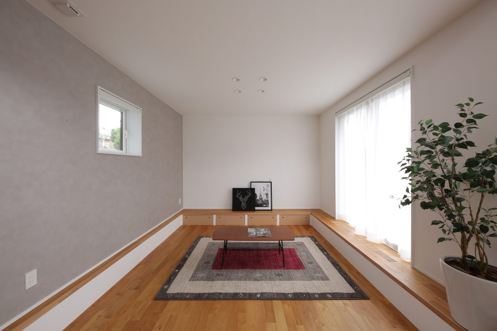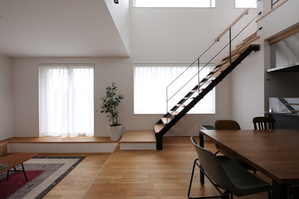 一段下げたピットリビングで過ごす、くつろぎの住まい。