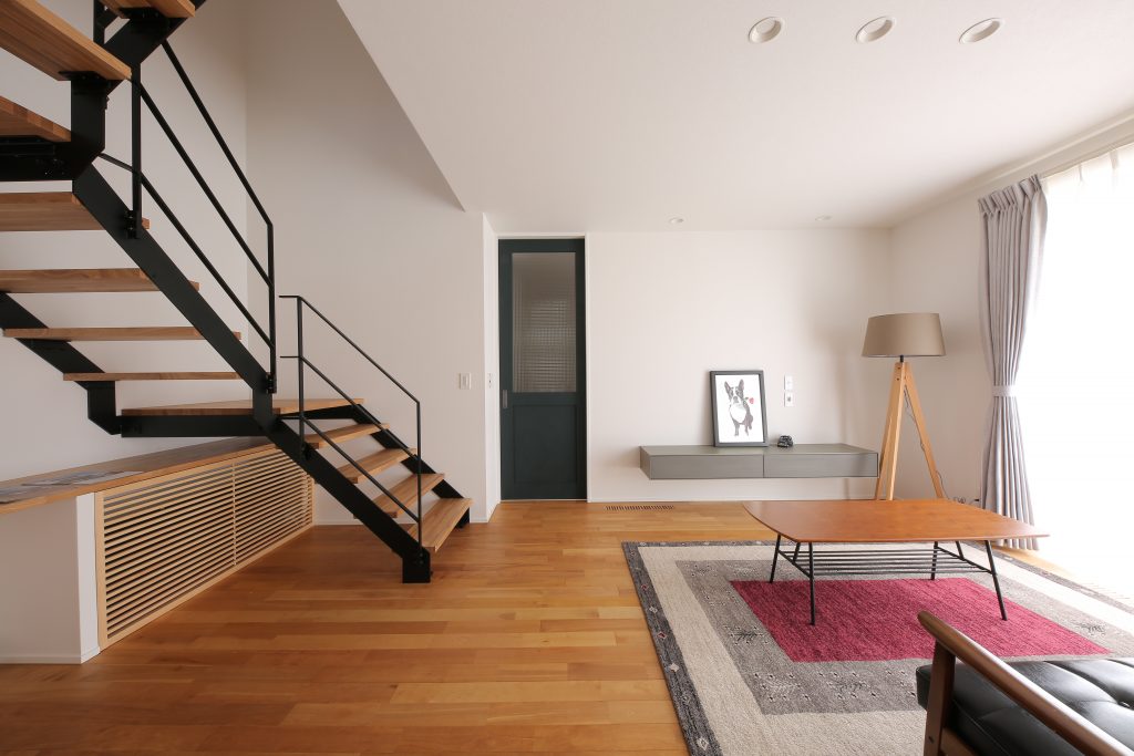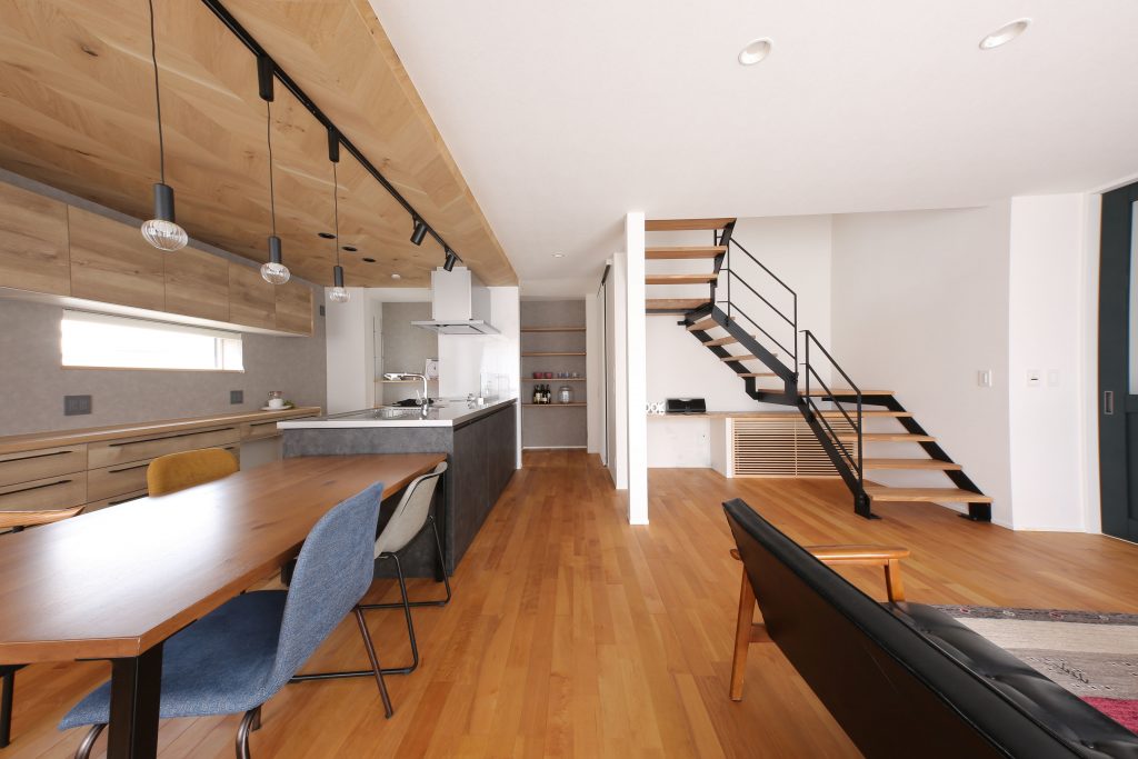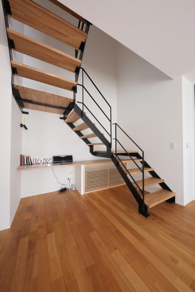 階段下には造作カウンターで隠ぺいした