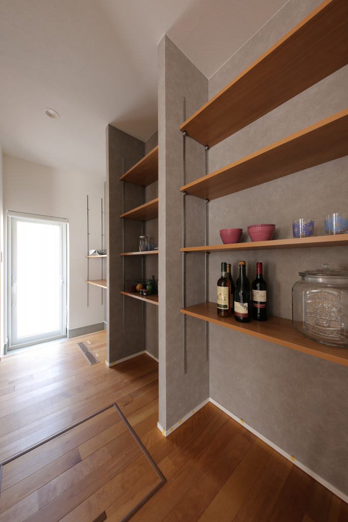 たっぷり収納のパントリー。