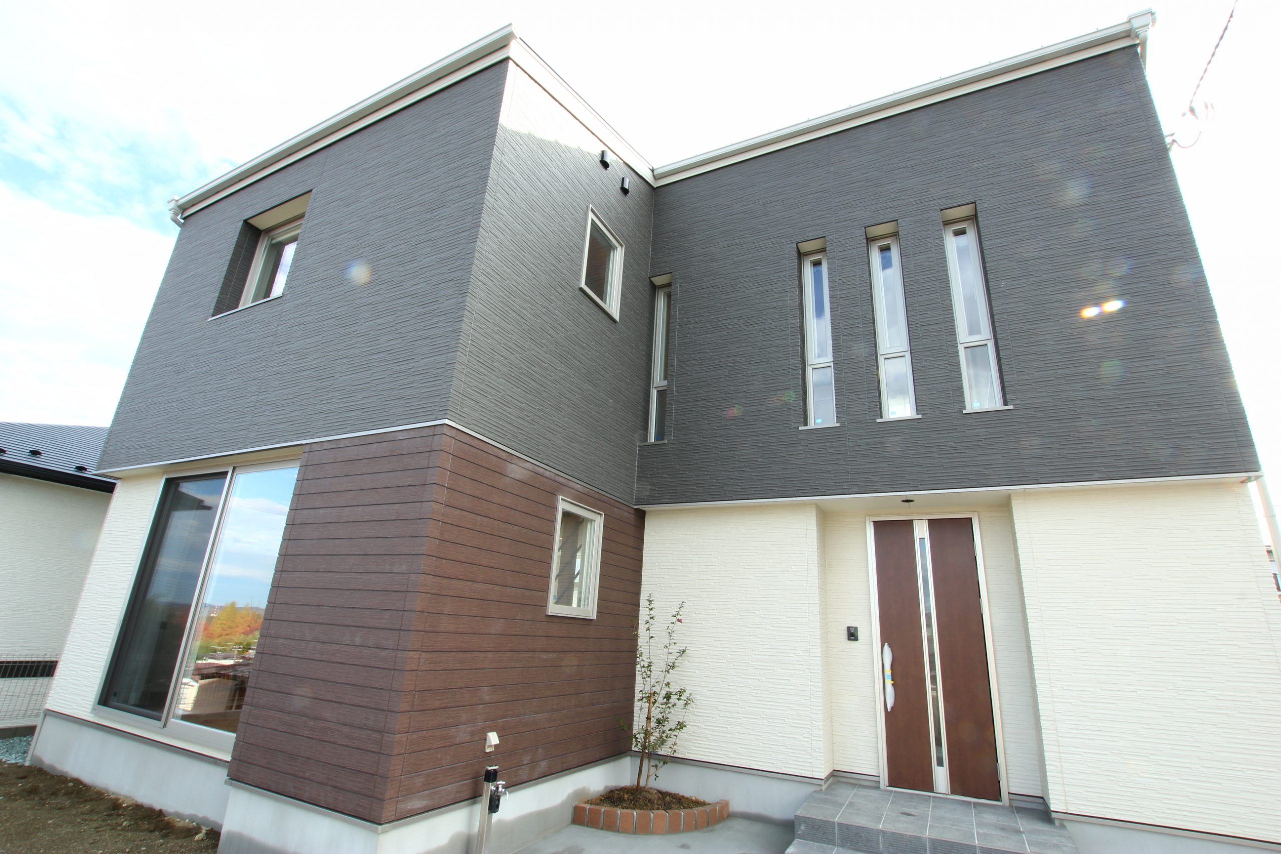 3種類の外壁の組み合わせで個性的な外観に仕上げました。