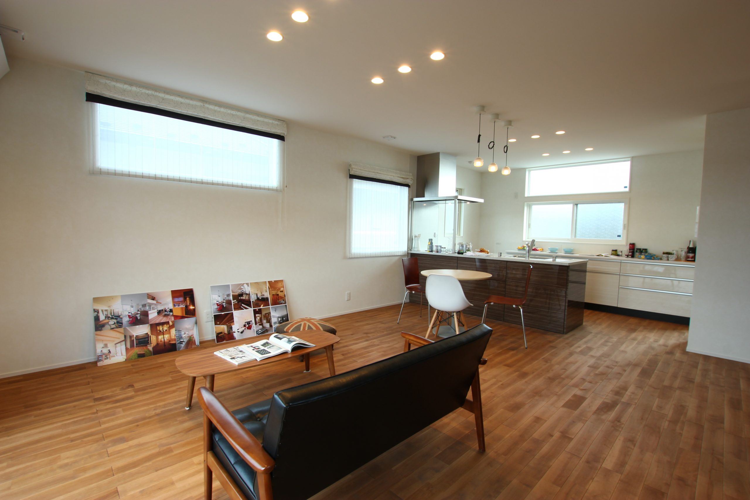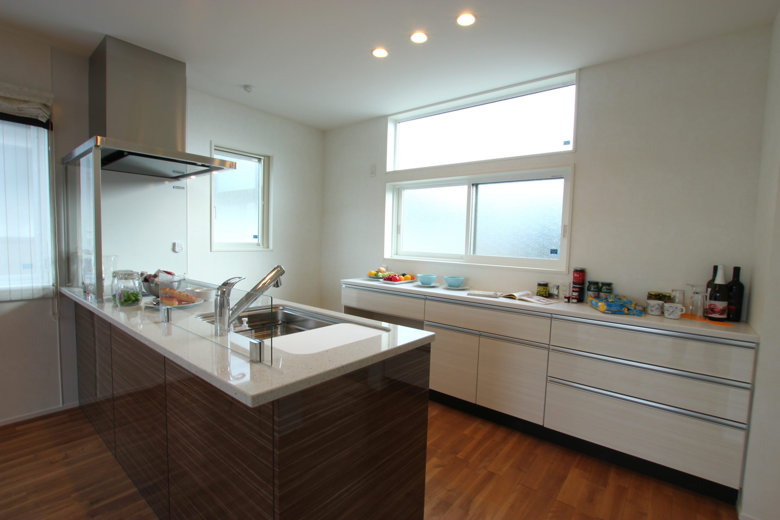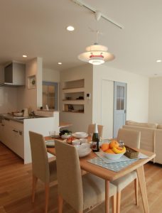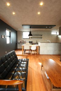 鏡面仕上げでフルオープンのペニシュランキッチンで、リビングダイニングと空間を一体化し、モダンテイストに仕上げました。
