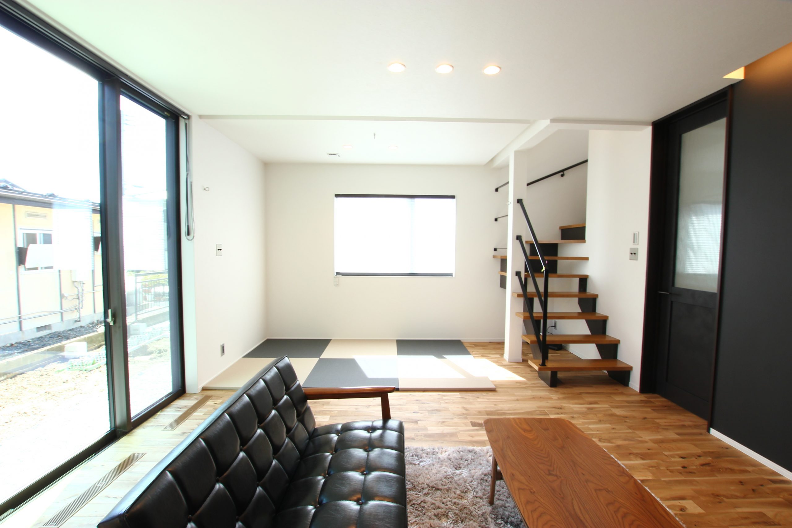 インダストリアルなスタイルにうまく溶け込んだ畳スペース。