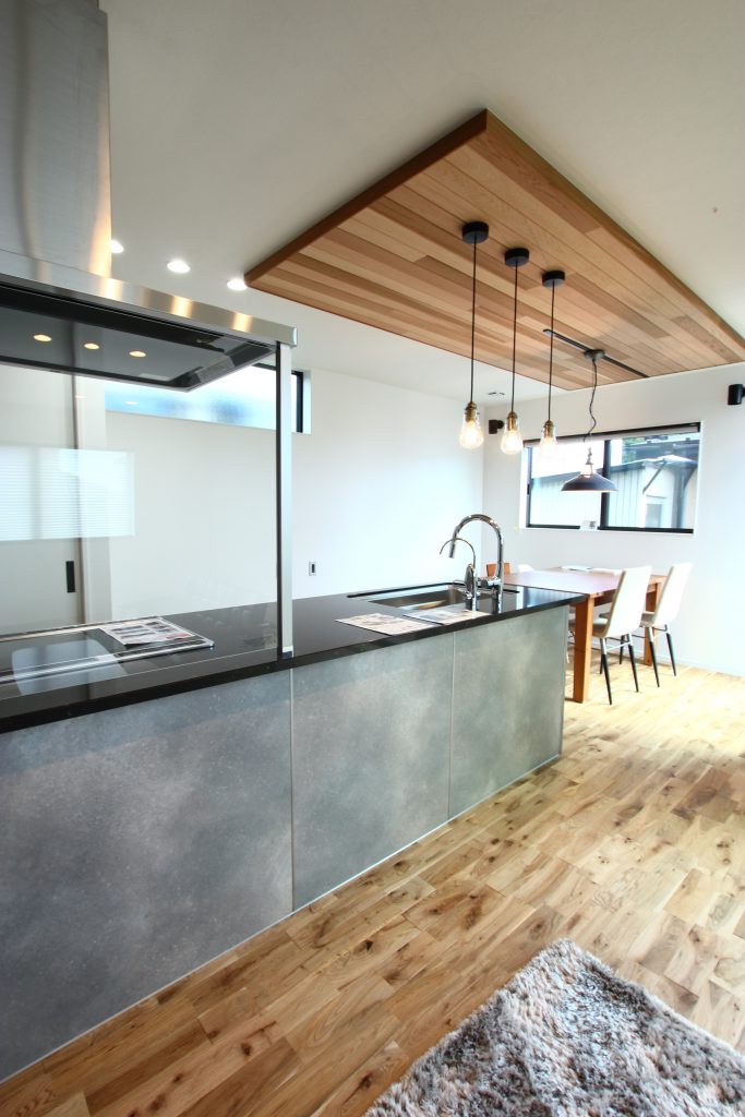 インダストリアルな雰囲気と自然素材がバランスのいい空間。
