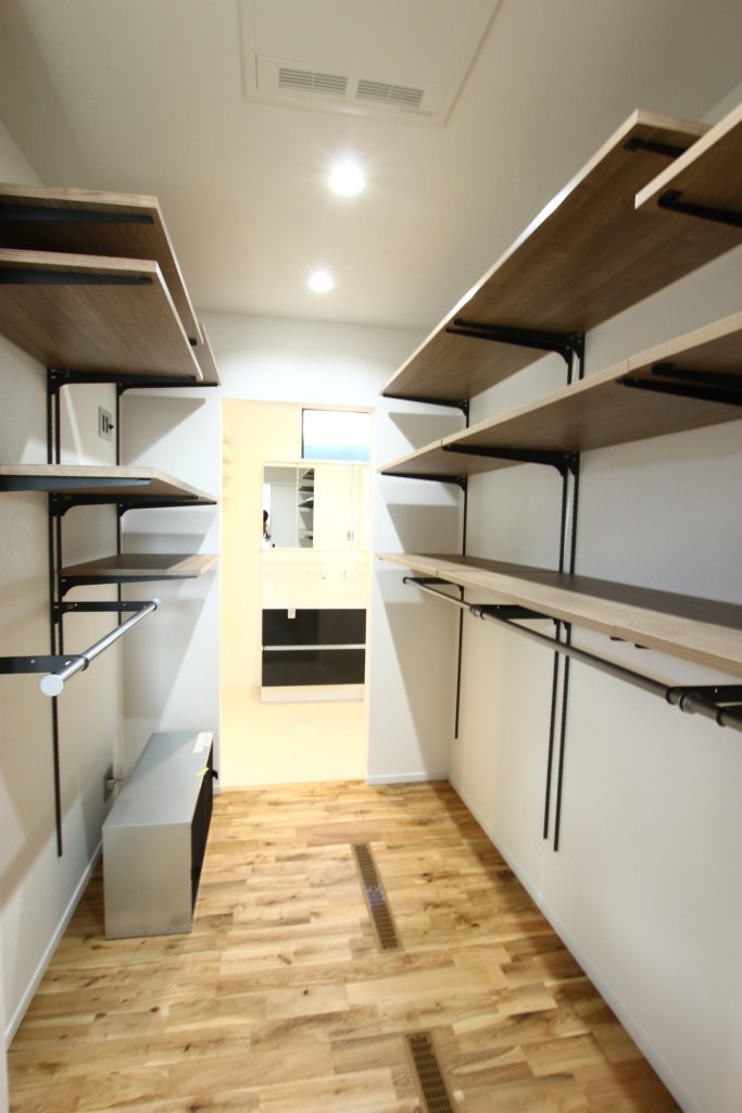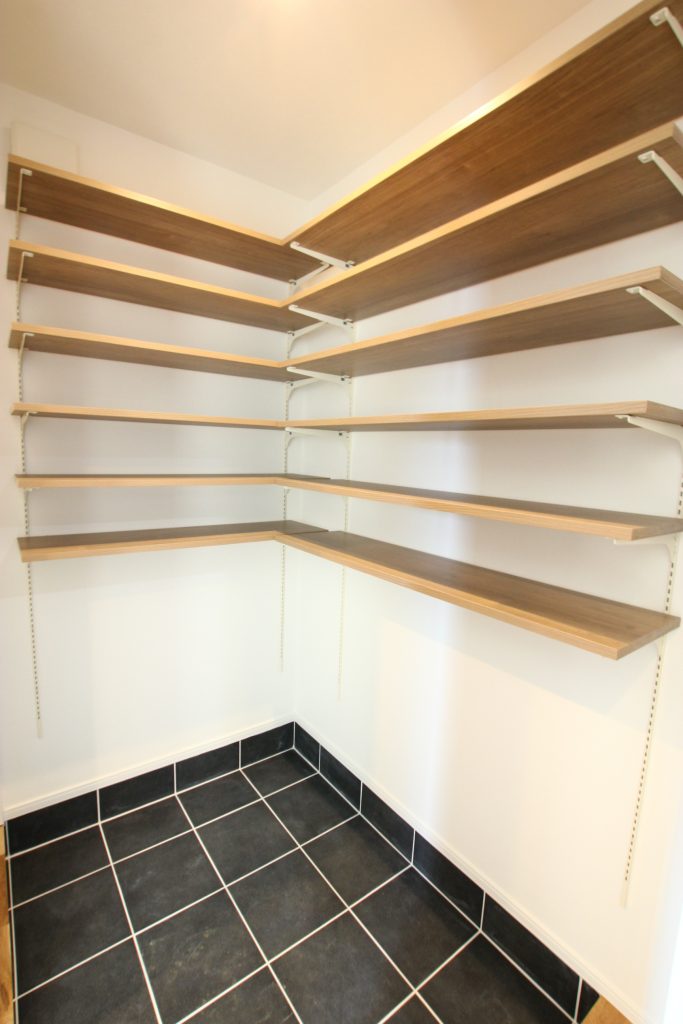 ベビーカーも畳まずに収納できる1.5帖の玄関収納。