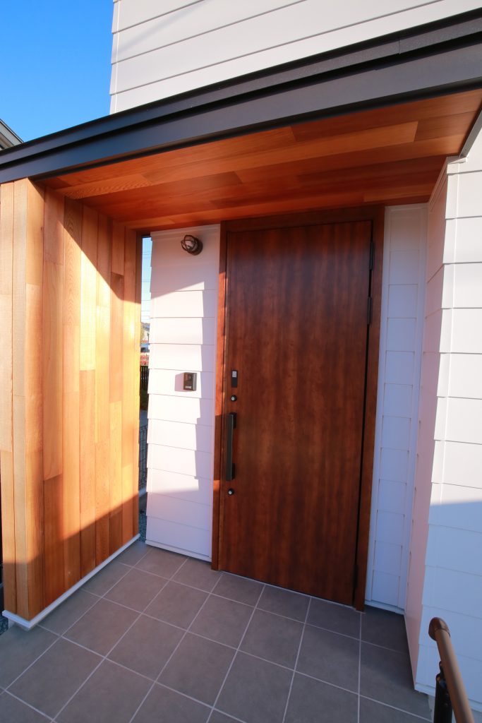 色のコントラストが美しい玄関。