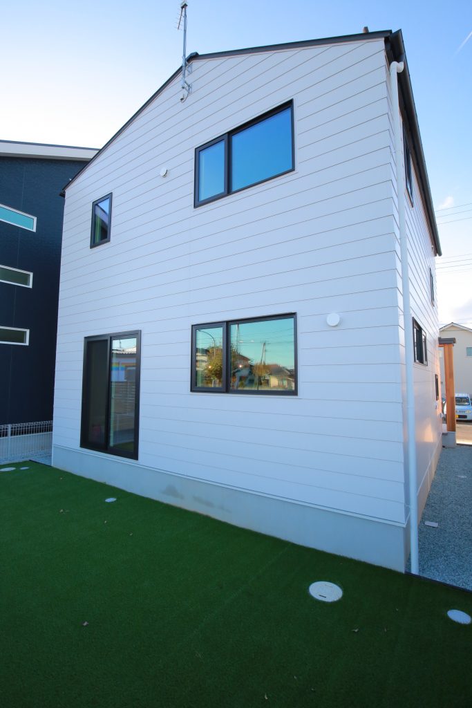 白のガルバとレッドシダーの外観