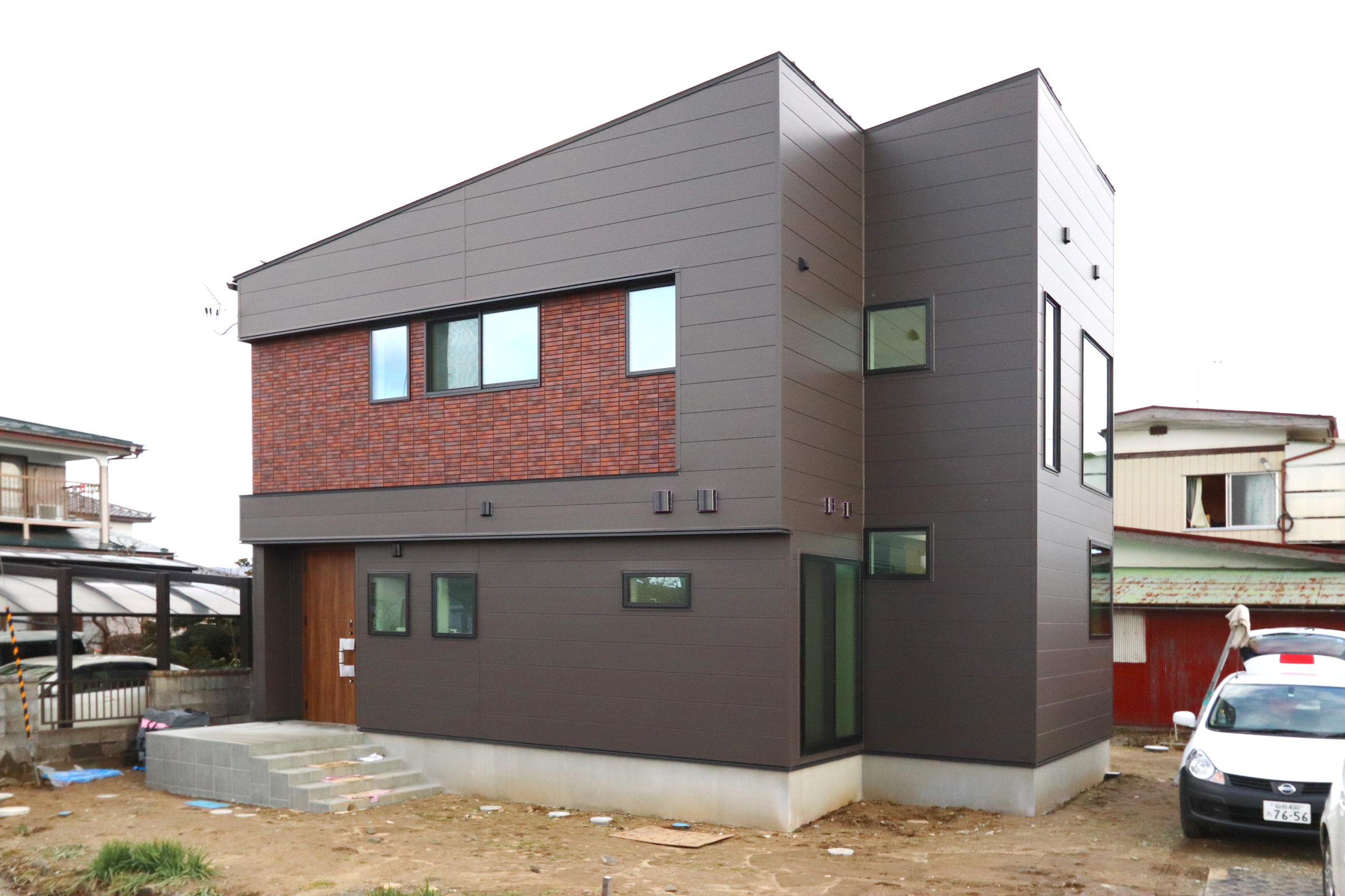 レンガとガルバが調和した外観
