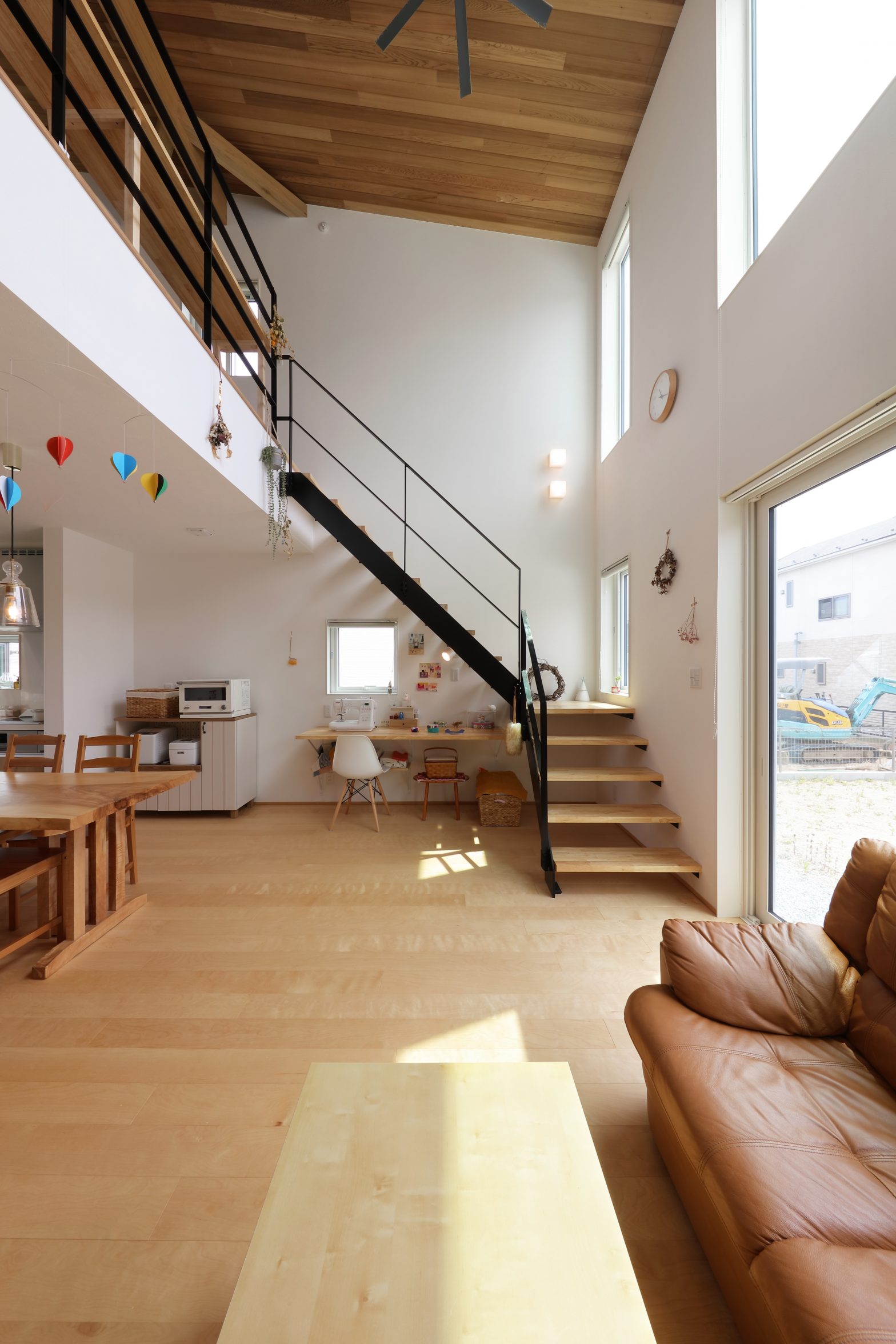 デザイン階段を楽しむリビング。